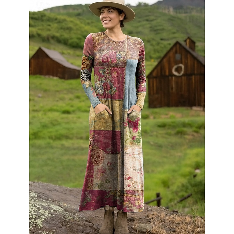Women's Maxi Dress Sheath Dress T Shirt Dress Tee Dress Vacation Casual Boho Holiday Date Regular Fit Floral Graphic Geometric Long Sleeve Crew Neck Deep Purple Pink Red Blue Spring Fall 12
