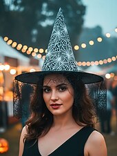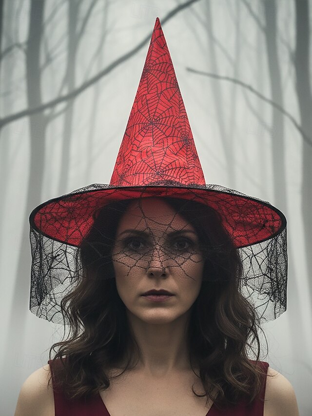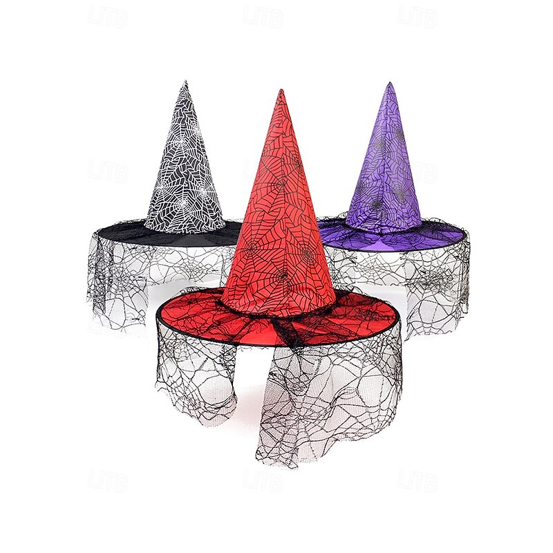 $9.99 - Women's Halloween Witch Hat with Spider Web Veil – Pointed Cosplay Costume Accessory in Multiple Colors for Party and Festival 2025. Shop for cheap Halloween Accessories online? Buy at lightinthebox.com on sale today!