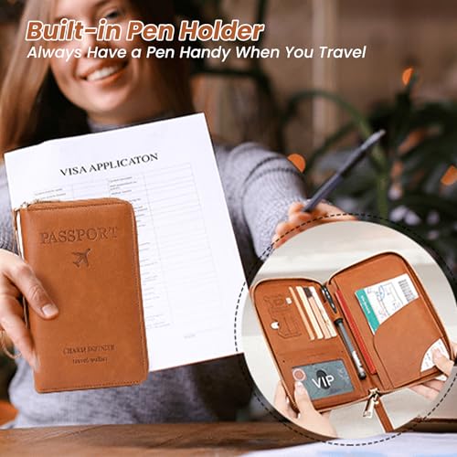 HOT ! Rowgins RFID Passport Wallet Holder: Multi-Functional Passport Holder for Travel Essentials - Wallet Cover Case for Travel Women and Men Must Haves Accessories (brown)