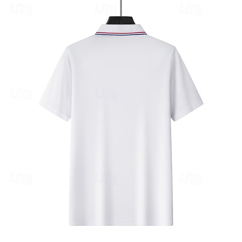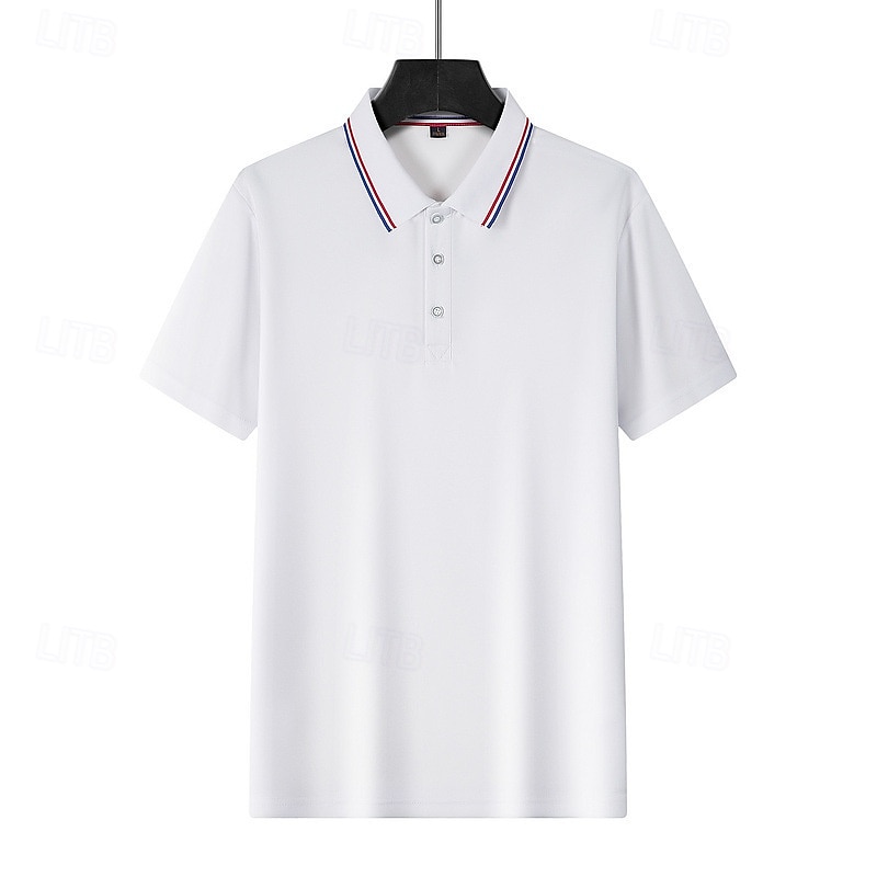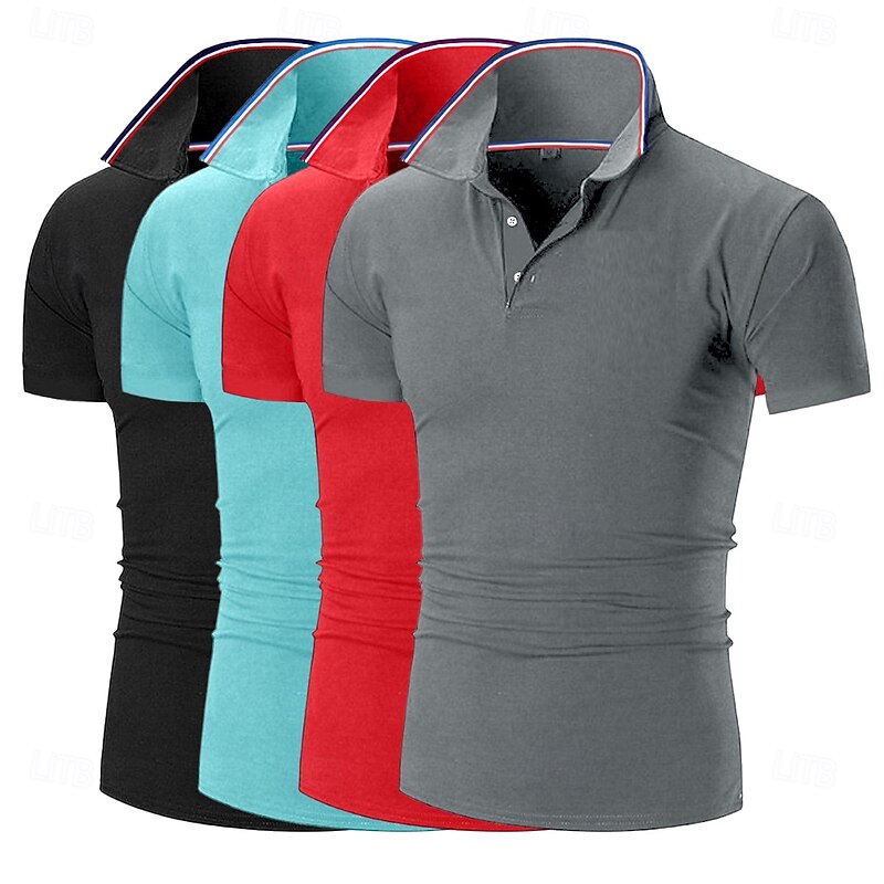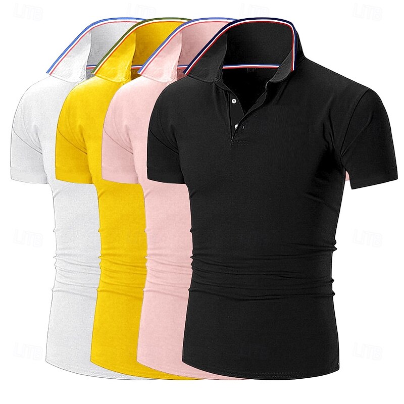 4pcs Men's Golf Shirt Pique Polo Shirt Business Casual Ribbed Polo Collar Short Sleeve Fashion Basic Solid Color Buttons 4-Piece Summer Spring & Fall All Seasons Slim Fit Blue black Gplf Polo 7