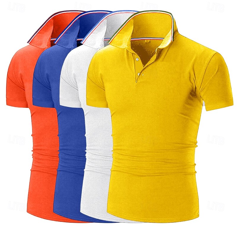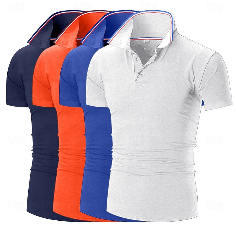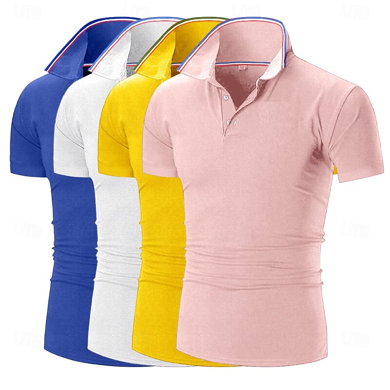 4pcs Men's Golf Shirt Pique Polo Shirt Business Casual Ribbed Polo Collar Short Sleeve Fashion Basic Solid Color Buttons 4-Piece Summer Spring & Fall All Seasons Slim Fit Blue black Gplf Polo 23