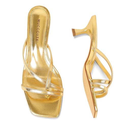 • Gold Heels for Women: These thong heels feature a cross thong strappy design and an open square toe, showcasing a minimalist and contemporary look.