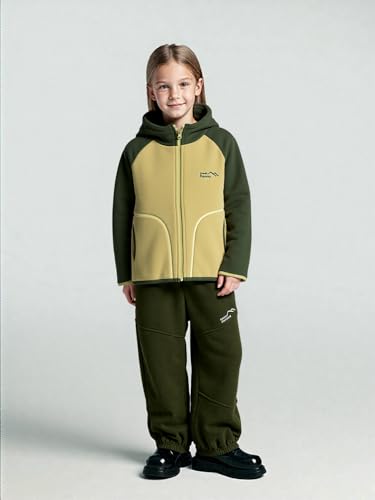 HOT ! Kids Fleece Jacket, Color Block Hooded Coat, Full-Zip Winter Outerwear with Pockets, (US, Numeric Height, 130, Fruit green)