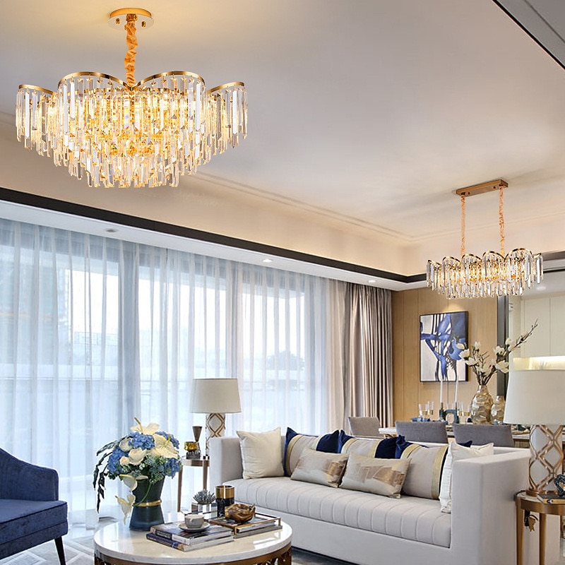 LED Chandeliers Modern Luxury, 60/80cm Gold Crystal for Home Interiors Kitchen Bedroom K9 Crystal Lamp Light 110-240V 12
