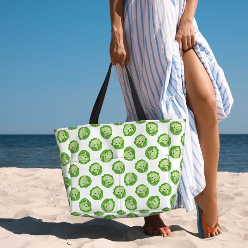 Large Beach Bags Water-resistant Sandproof - bright cabbage cute eyes funny Cute Beach Tote Bags for Women with Zipper