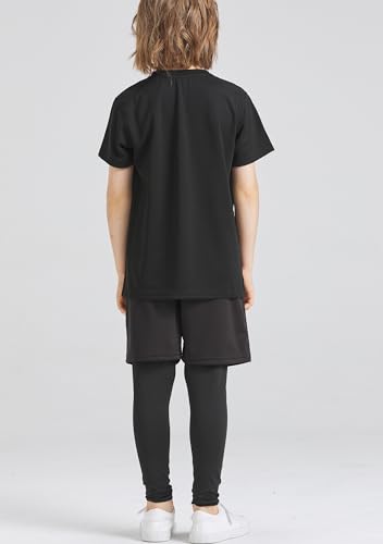 DANI CHINS Boys 2 in 1 Athletic Active Leggings Sports Running Quick Dry Breathable Compression Pants 5