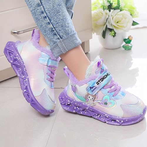 IWIHMIV Girls' Sneakers Girl Tennis Shoes Lightweight Slip On Running Shoes Light Up Warm Shoes Walking Shoes for Toddler 3