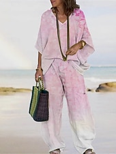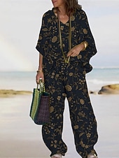 More information about Women's Vacation Fashion Pants Sets 3/4 Length Sleeve V Neck Floral Print Vacation Daily Holiday Black Pink Summer Regular Fit