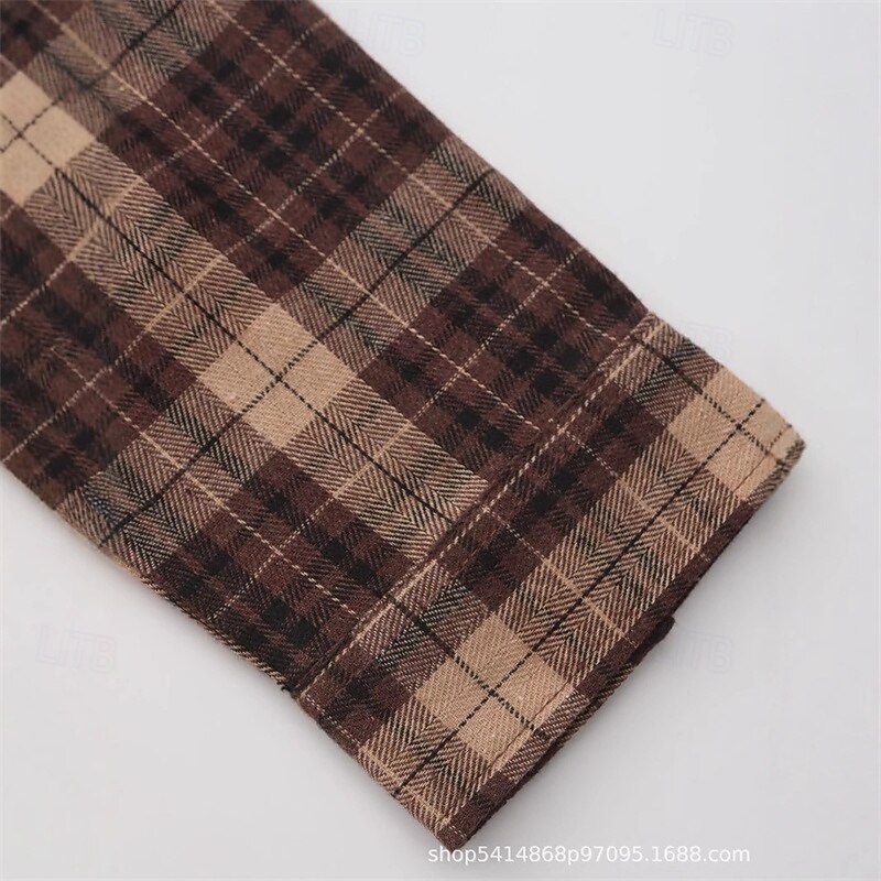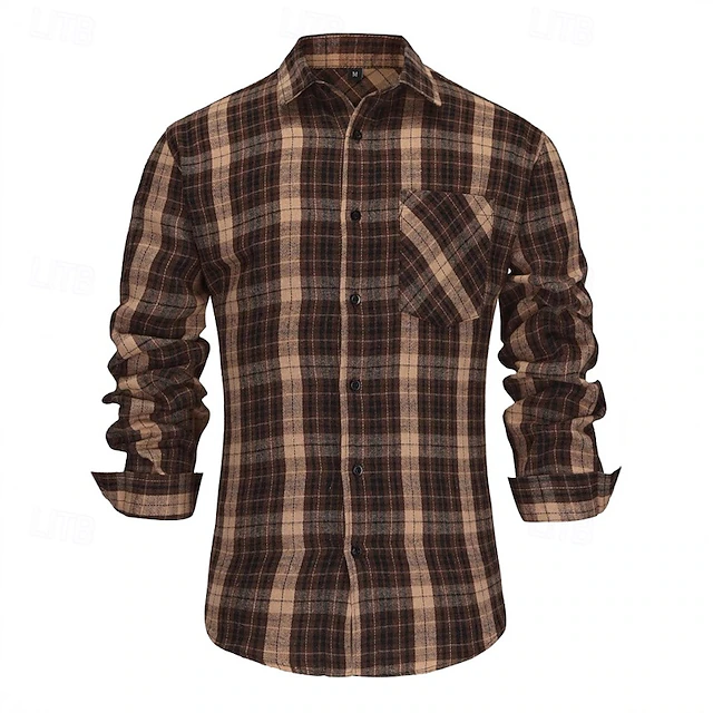 More information about Men's Shirt Summer Shirt Casual Shirt Beach Shirt Button Up Shirt Checked Shirts Coffee Long Sleeve Plaid Lapel Vacation Hawaiian Button-Down Clothing Apparel Fashion Casual Comfortable