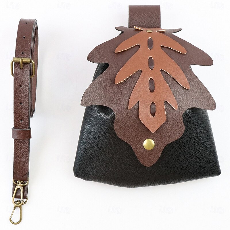 Medieval Renaissance Bag Belt Pouch Coin Purse Elf Viking Ranger Leaf Fancy Dress Women's Halloween Carnival Casual LARP Ren Faire Adults 1