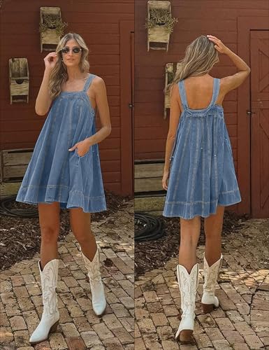 • Features: This babydoll dress has 2 handy side pockets that provide ample storage space to carry essentials such as keys, cell phone, wallet and other small items. Featuring an adjustable tie back, backless, and sleeveless design, Make this denim overalls chic and charming. This sleeveless denim outfit for women is perfect for women who want to be charming and comfortable all the time.