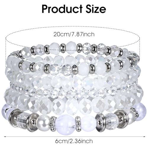 Material: GlassMetal type: No Metal TypeClasp type: Elastic BandChain type: ElasticGem type: NoItem type name: Beaded Bracelets For Women【Bracelet Set】These silver bracelet stacks are about 7.87 inches in length and 2.36 inches in diameter. They are connected by a sturdy elastic rope, which is durable and not easy to break. The elastic design ensures that it fits most wrist sizes, and you can wear it alone or in a stacked manner.【Durable Material】The beaded bracelets for women contain faceted glass beads in dark grey, transparent, black, and silver and are strung with an elastic cord. The four bracelets of the same color are combined together to make the bracelet set stylish and elegant while also having a more layered feel.【Fashion Design】This stackable stretch bracelet for women features a charming multi-layer design, and the beads reflect different colors under light at different angles. The addition of silver ball beads adds a unique sense of fashion. The black bracelets for women will bring you endless confidence and unique style.【Occasions of Use】This stylish pearl bracelets for women not only have a charming appearance but are also suitable for various festive occasions. Whether a mature and stable woman, a fashionable young person, or an elegant and intellectual lady, they can all find a style and design that suits them.【Perfect Gift】The beaded bracelets for women can be a birthday gift for women, teachers, mothers, grandmothers, family, lovers friends, etc. Its unique design and elegant appearance will undoubtedly impress the recipient and become a precious gift. Perfect for everyday use. premium materials and excellent craftsmanship ensure long-lasting durability.