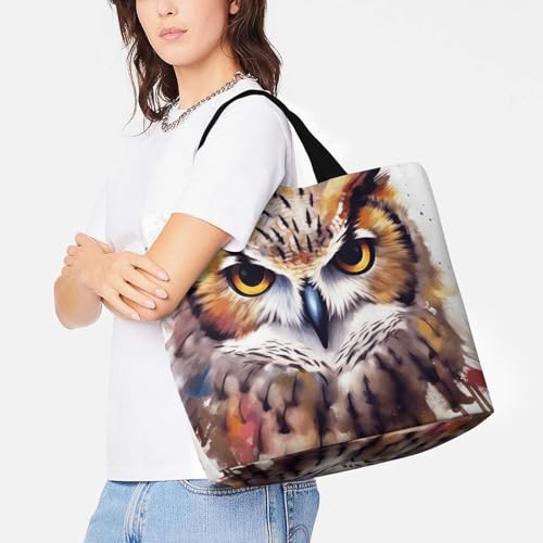 • 【High-Quality & Durable】Crafted with premium soft polyester, this Watercolor Cool Owl Head reusable tote bag withstands daily wear. Machine washable & supports 40+ lbs weight - ideal for groceries, travel, and work essentials.