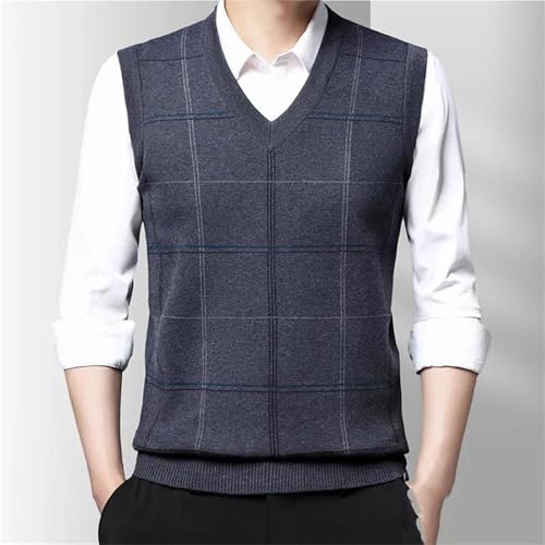 Mnjyihy Mens V Neck Pullover Sweater Vest Fall Winter Sleeveless Thick Slim Fit Checked Sweater Vests 7