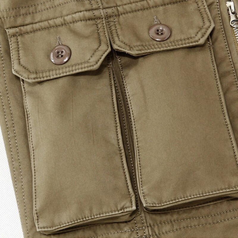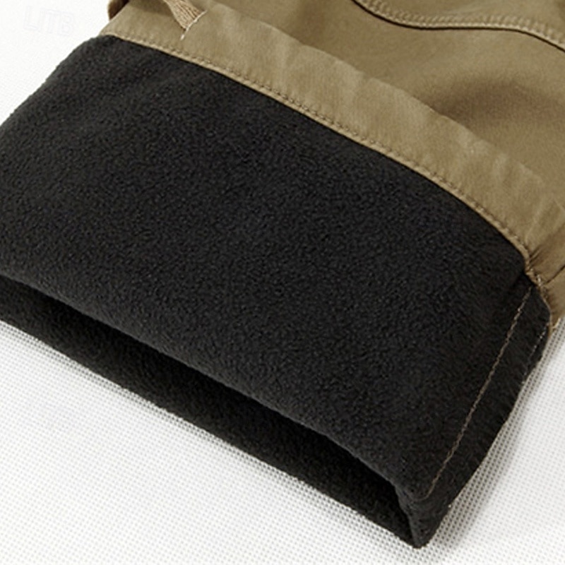 Highlights Cargo Pants Highlights [Fabric] : Crafted from a durable 95% cotton blend, these cargo pants ensure comfort, warmth, and resilience, making them ideal for fall and winter wear. The fabric is designed to withstand outdoor conditions while providing a cozy fleece lining for additional insulation. [Fit Type] : Featuring a regular fit with a mid-waist design, these pants offer a straight leg cut tailored for versatility in various activities. The relaxed fit enhances movement, making these trousers a reliable choice for both casual and outdoor settings. [Design Highlights] : These pants are adorned with multiple pockets for practical use, including side cargo pockets with flap closures and zippered pockets for secure storage. The pants include belt loops for an adjustable and custom wear experience, while stitching details around the knees add extra flexibility and durability. The button fly and timeless dark khaki color provide a timeless look. [Occasions] : Perfect for daily wear, outdoor adventures, camping, and hiking, these tactical cargo pants blend functionality with style. Whether you're exploring the wilderness or enjoying a weekend outdoors, they are a dependable and fashionable option. [Size Range] : Available in a variety of sizes including 29, 30, 31, 32, 33, 34, 36, 38, and 40, ensuring a suitable fit for different body types. The range accommodates various needs, providing an option for everyone looking for comfort and durability in their wardrobe. Perfect for everyday use. top-grade materials and excellent craftsmanship ensure long-lasting durability.