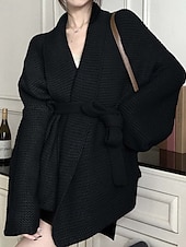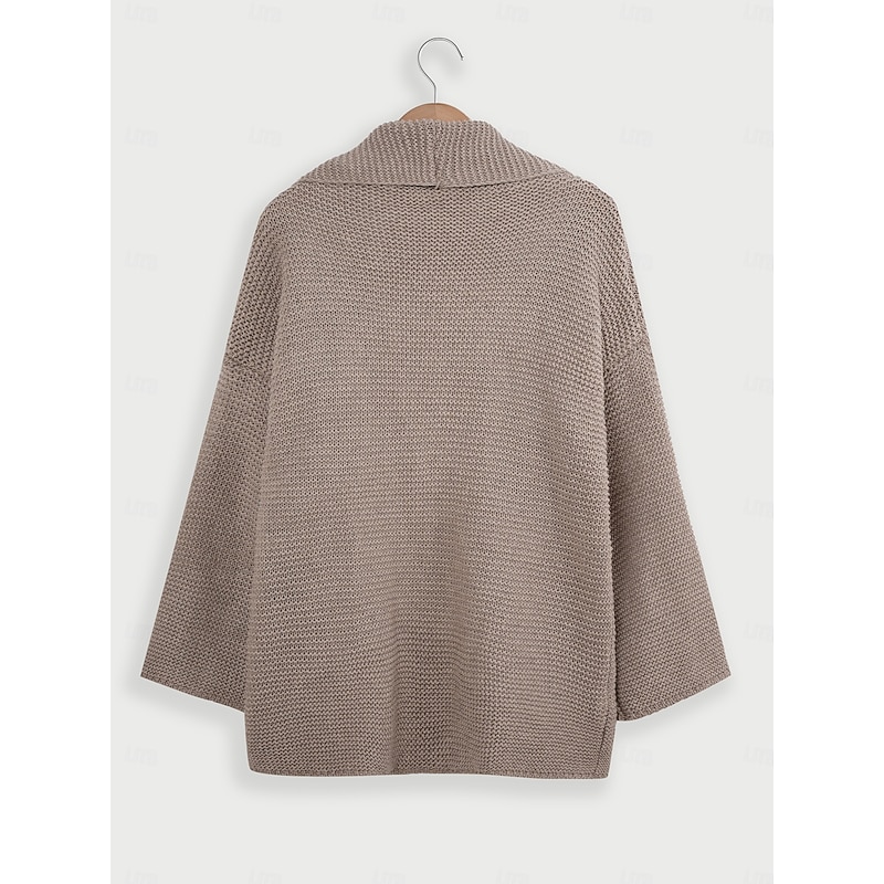 More information about Women's Cardigan Streetwear Daily Solid Color Open Front Knitted Textured Long Sleeve Regular Tops Knit Outdoor Black Khaki Fall Winter