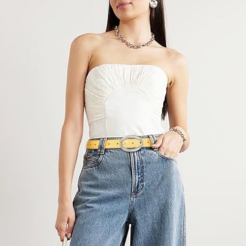 • 【Stylish Versatile Design】 Features a smooth silver round metal buckle that adds minimalist sophistication, effortlessly complementing jeans, dresses, slacks, and office attire for any occasion.