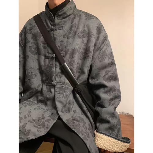 More information about NCDUANSAN Winter Chinese style button up collar men's jacket, retro style, thick and warm imitation sheep wool jacket top