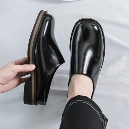 Mens Retro Patent Leather Backless Slip-On Chunky Heels Loafers Casual Round Toe Non-Slip Shoes for Walking Business Party Wedding 7