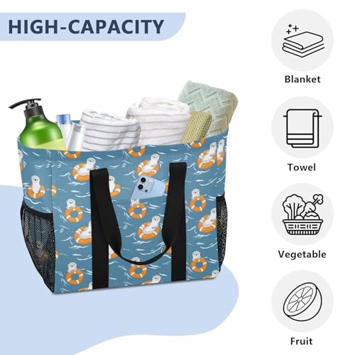 • Secure Organization: Tote Bag with main compartment fits towels, blankets, or laundry. Hidden inner zip pocket protects cash/cards; dual mesh pockets keep essentials accessible. Front pocket for small items.