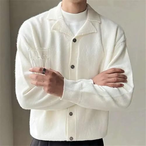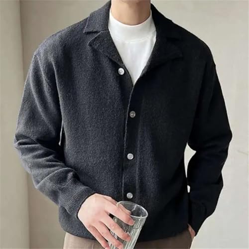 HOT ! Men's Lapel Cardigan Knitted Solid Color Sweater Warm Single-Breasted Cardigan Sweater