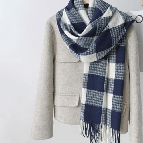 • Perfect Size: Width 26.7 inches (68 centimeters) x 70.8 inches (180 centimeters), including tassel length 3.9 inches (10 centimeters); This cashmere scarf is a warm knit large plaid scarf with tassel details, versatile functions, and can wrap around any clothing, comfortable and fashionable all day long.