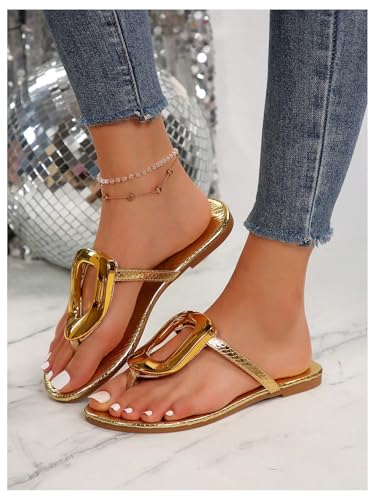 GORGLITTER Women's Metallic Flip Flops Flat Sandals Thong Open Toe Beach Summer Dressy 2025 Slip on Slide Shoes 5