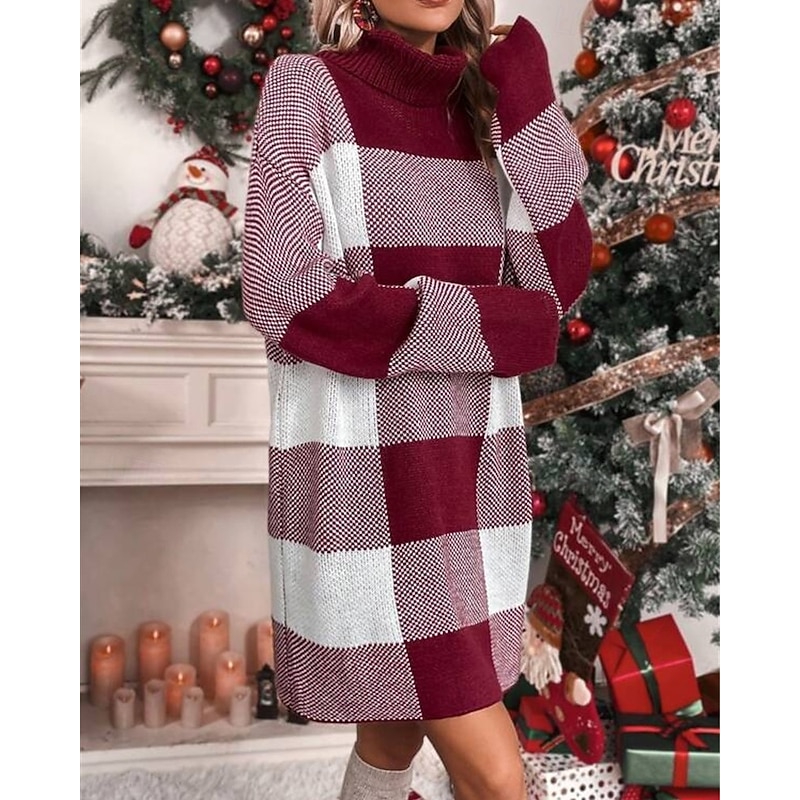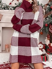 More information about Women's Sweater Pullover Fashion Casual Checkered Ribbed Turtleneck Knitted Long Sleeve Long Tops Knit Christmas Outdoor Daily Red Fall Winter