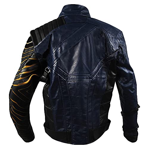 Mens The Falcon and The Winter Soldier War Bucky Barnes Cosplay Blue Biker Faux Leather Jacket 3