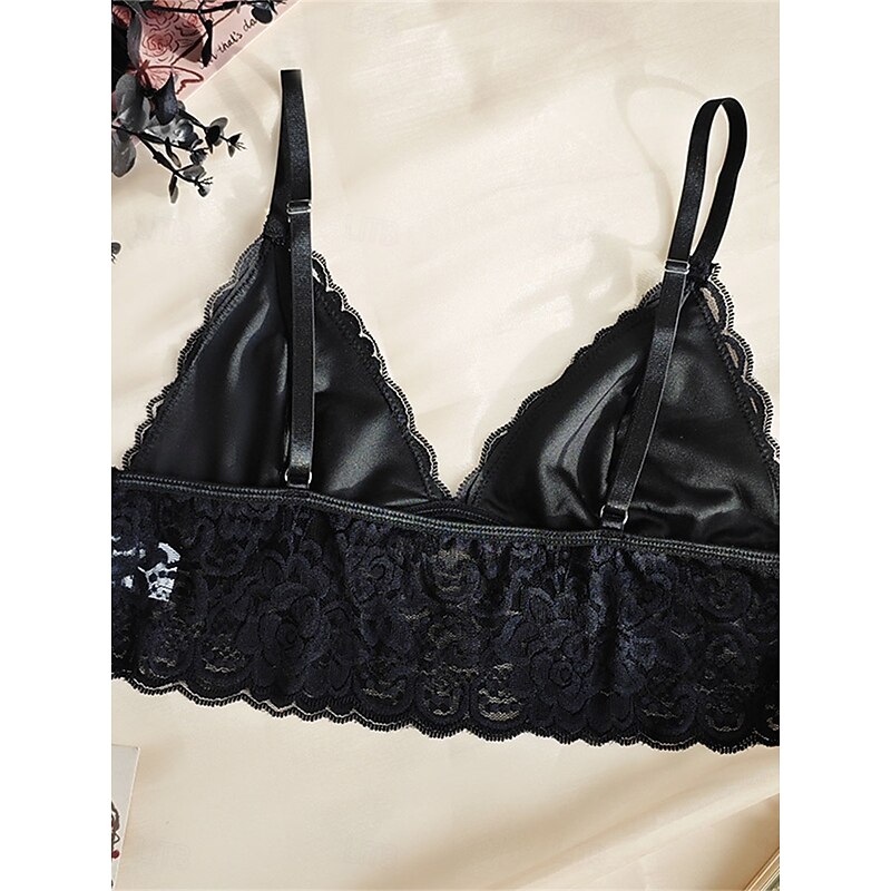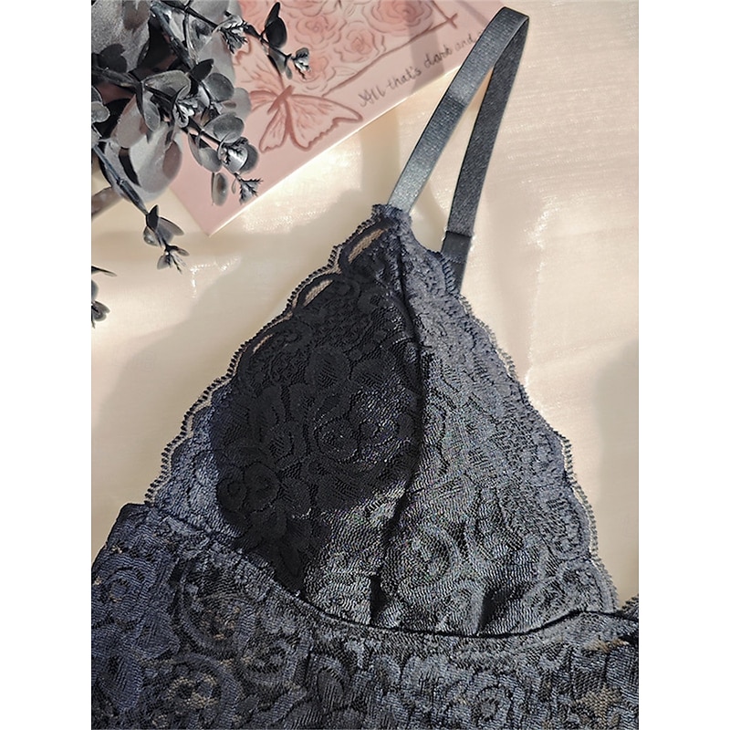 This bralette stands out with its delicate floral lace patterns and scalloped hemline, delivering a feminine touch. The backless design provides a contemporary and daring look, ideal for those who appreciate subtle elegance.
