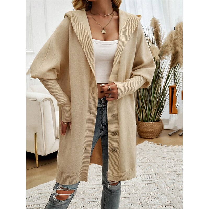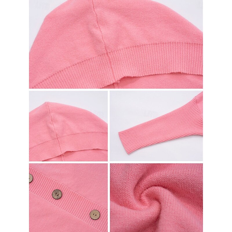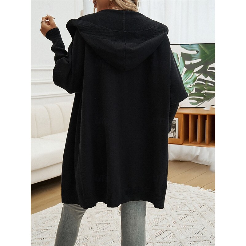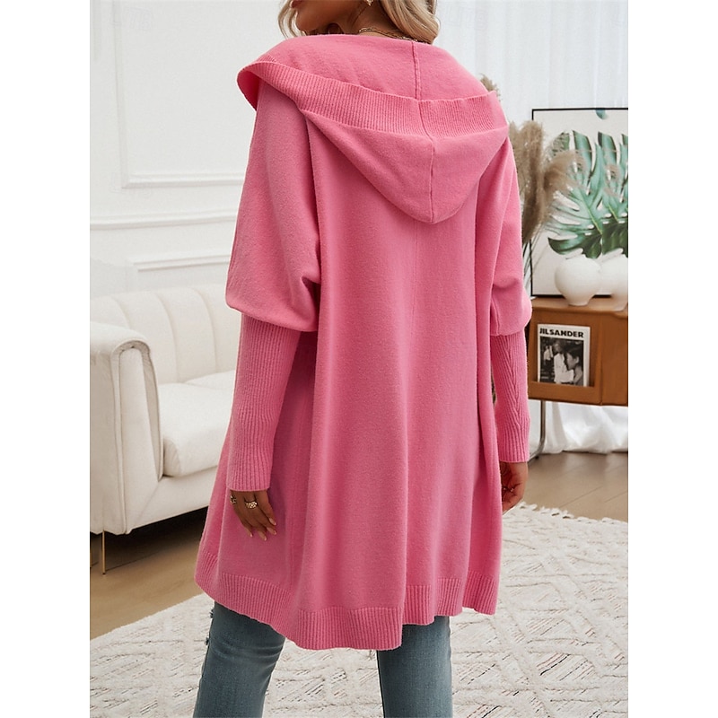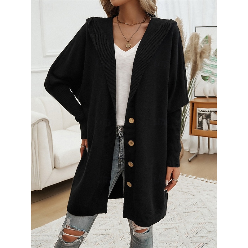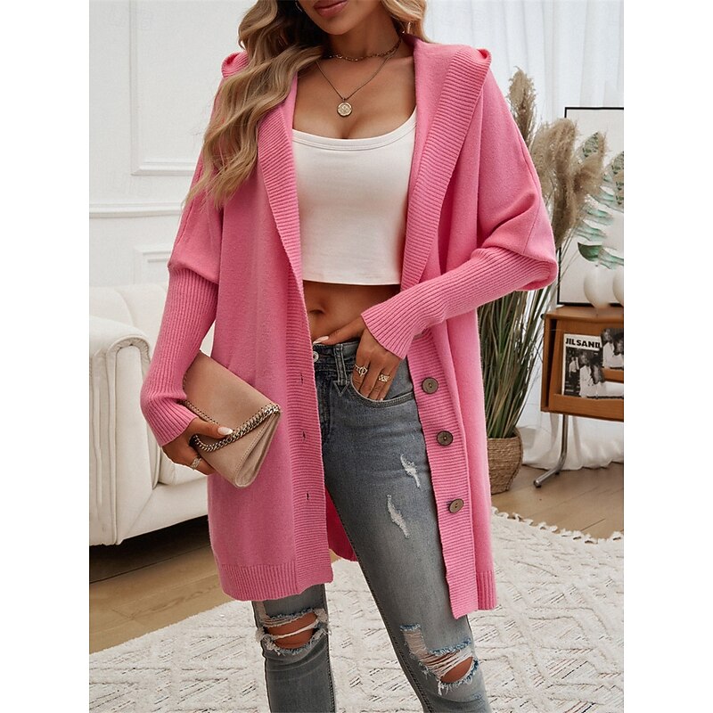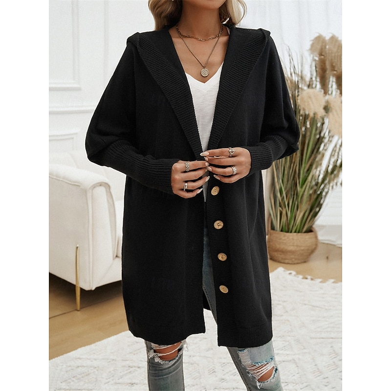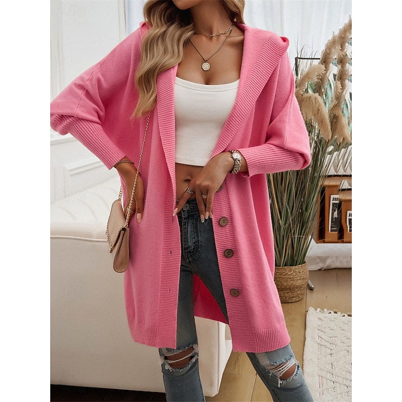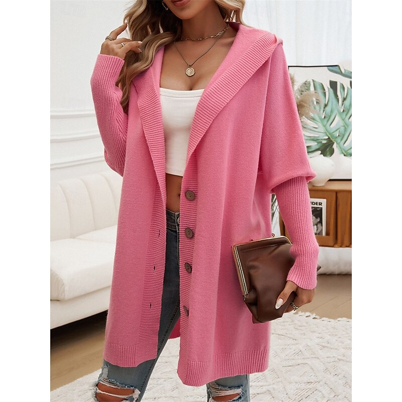 More information about Women's Sweater Cardigan Casual Soft Pure Color Ribbed Hooded Buttons Pocket Knitted Long Sleeve Long Tops Knit Outdoor Daily Weekend Black Fuchsia Fall Winter
