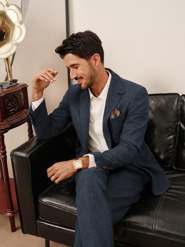 PJ PAUL JONES Mens Blazer Vintage Wool Blend Sport Coat Herringbone Tweed Blazer Suit Jacket with Pocket Square 6