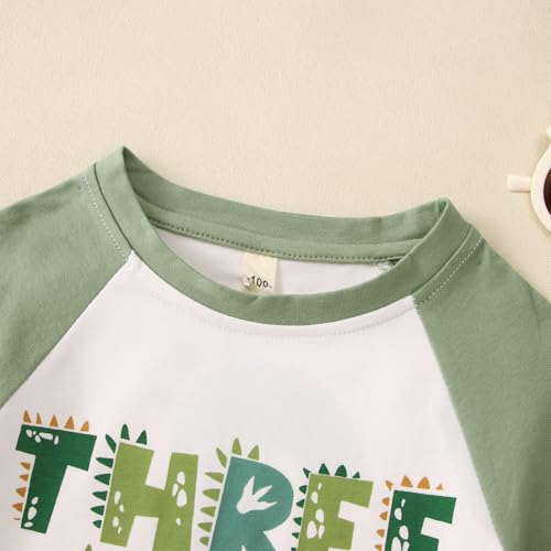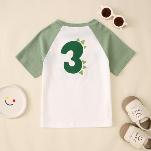 Fabric type: Cotton blendCare instructions: Machine wash, do not bleachMaterial: Our dinosaur birthday t-shirt for baby boys made from premium materials and plush cotton blend fabric, it won't shrink or discolor after washing, and breathable, softer materials are sure to please all the senses.Design: T-Rex dinosaur shirts for baby boys, three rex birthday tops, funny short sleeve graphic tees features eye-catching Two Rex Three Rex and Four Rex letters printed. This baby boy three rex birthday outfit is the perfect gift for a family member's birthday. Don't miss out on this cute dinosaur birthday graphic t-shirt apparel, especially for dino lovers!Occasion: These dino birthday outfit toddler boy are perfect for birthday occasions or daily, school, sports, casual, holiday, ceremony, photo shoots, family gatherings, smash cake, parties, etc. Cute two rex dinosaur birthday shirt, funny age number graphic tee, dino party adorable t-shirt, this toddler summer t-shirts for boys is perfect for a birthday party, or dino parties.Size : Three rex birthday short sleeve shirts for boys,T-Rex dinosaur birthday baby boy outfit, 2nd dino birthday shirt, 3 rex birthday shirt, 4th birthday shirt boy. Please choose appropriate size according to the specific size chart.Package : 1Pcs baby boys dinosaur birthday T-Rex tee shirt. Support machine wash, hang to dry, do not bleach. Perfect for everyday use. premium materials and excellent craftsmanship ensure long-lasting durability.