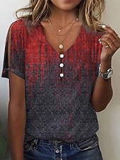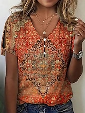 More information about Women's Blouse Floral Marble Bohemia Vintage Casual Short Sleeve V Neck Regular Tops Daily Buttons Print Red Blue Orange Gray Summer