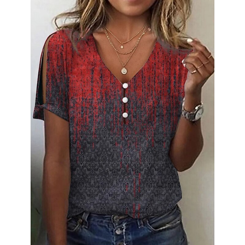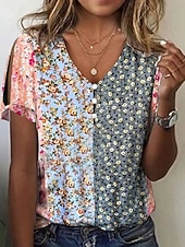 HOT ! Women's Blouse Floral Marble Bohemia Vintage Casual Short Sleeve V Neck Regular Tops Daily Buttons Print Red Blue Orange Gray Summer