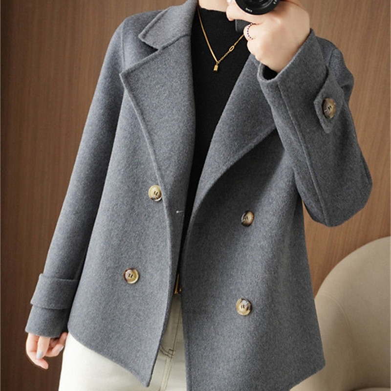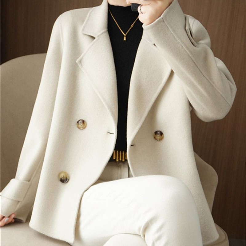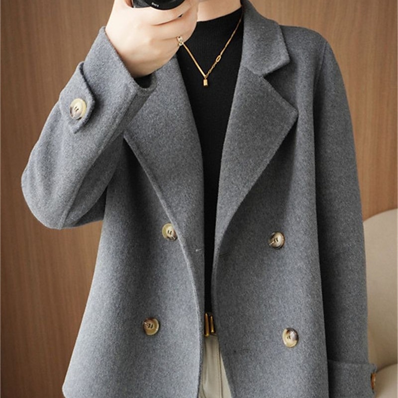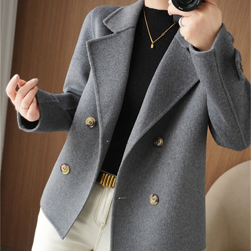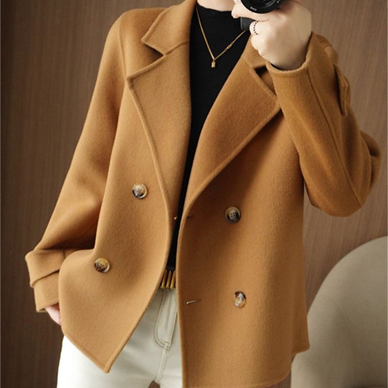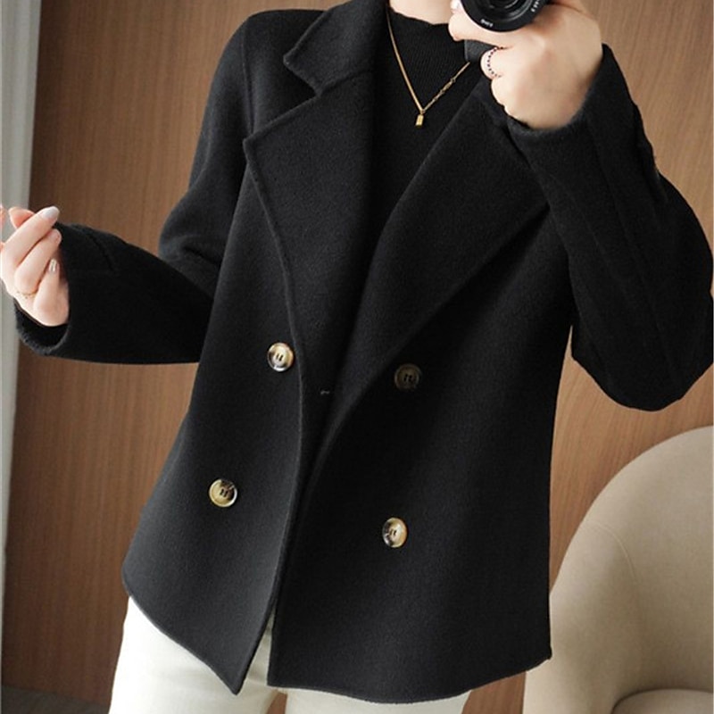 Women's Winter Blazer Coat Fall Double Breasted Lapel Jacket Wool Blend Short Coat with Pockets Warm Black White Camel 19