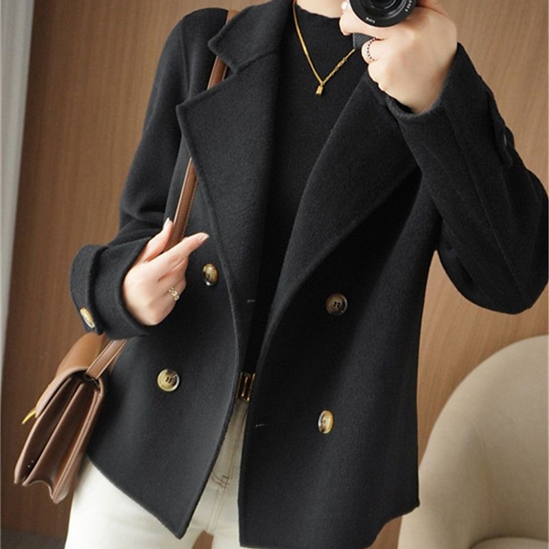 Women's Winter Blazer Coat Fall Double Breasted Lapel Jacket Wool Blend Short Coat with Pockets Warm Black White Camel 21