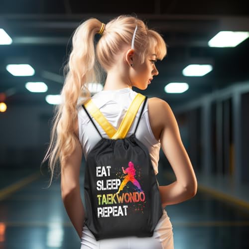 Eat Sleep Taekwondo Repeat Drawstring Backpack For Men Women, Waterproof Sport Sackpack For Taekwondo Lover Taekwondo Fan, Funny Birthday Christmas String Gym Bag Gifts For Her Him 1