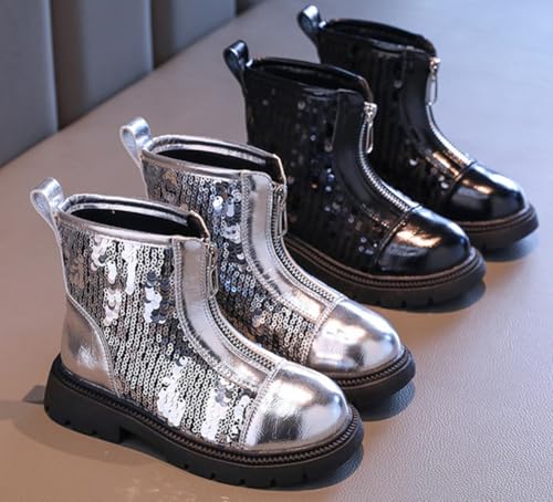 HOT ! Girls' Glittery Waterproof Ankle Combat Boots with Side Zipper
