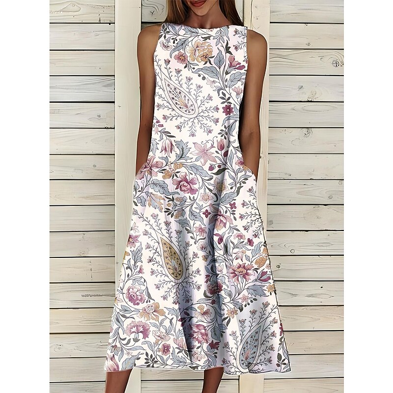 This Women's Midi Dress Sundress A Line Dress Summer Dress Vacation Casual Cocktail Birthday Daily Holiday Regular Fit Floral Graphic Sleeveless Crew Neck White Blue Sky Blue Green Summer combines elegant design with practical functionality. Every detail has been carefully considered to ensure you get the supreme possible experience. The top-grade construction means this product will serve you well for years to come.