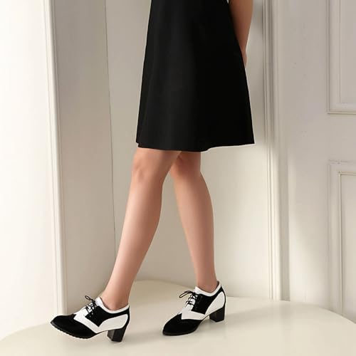 Lace Up Mid Block Heels Round Toe Oxfords Brogue 4