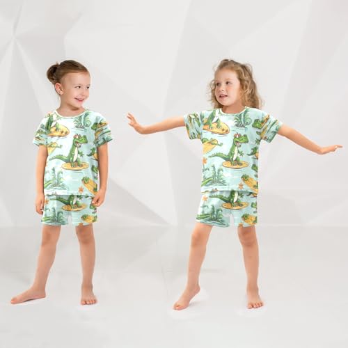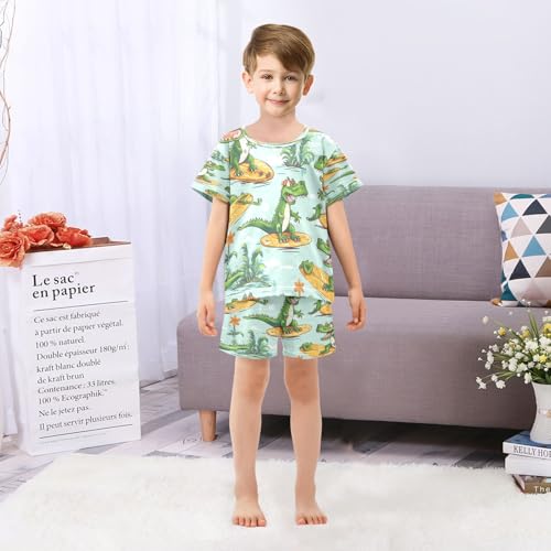 Surfing Crocodile Kids Pjs Set Boys Girls Summer Short-Sleeve Sleepwear Pajamas 2PCS 4