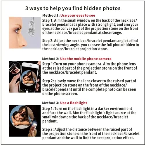 • Photo bracelet: Photo Projection bracelet are carefully crafted by skilled craftsmen. High-quality optical lenses ensure that photos are clearly visible when projected. Minor handmade defects further highlight the authenticity and artistry of the photo bracelet.
