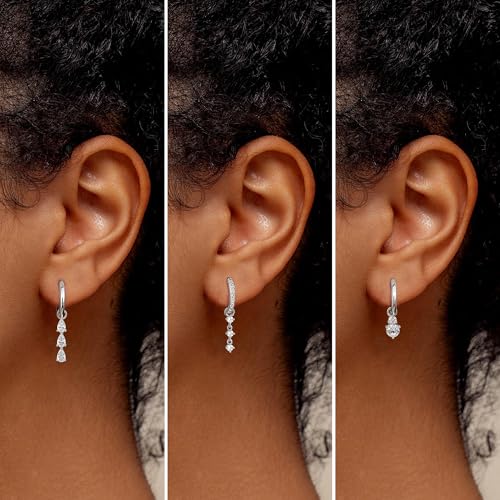 14K Gold Earring Charms for Hoops : 925 Sterling Silver Earrings Hypoallergenic Small Huggie Hoop Earrings with Dangle CZ Charm Dainty Mix and Match Earring Pack for Women Men 3