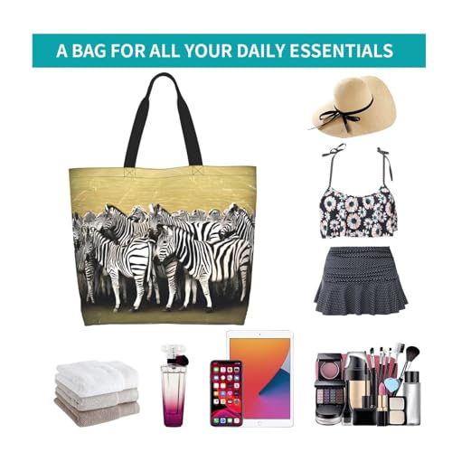 Women'S Large Capacity Zebra Racetrack Shoulder Shopping Bag,Tote Storage Bag,Simple And Fashionable Shoulder Bag For Travelling,Beach,Gym,Working. 7