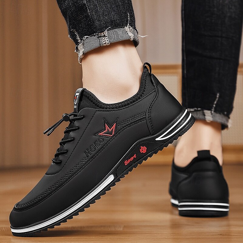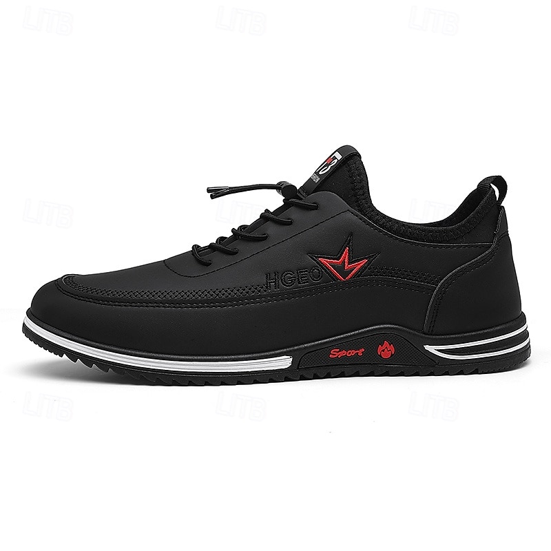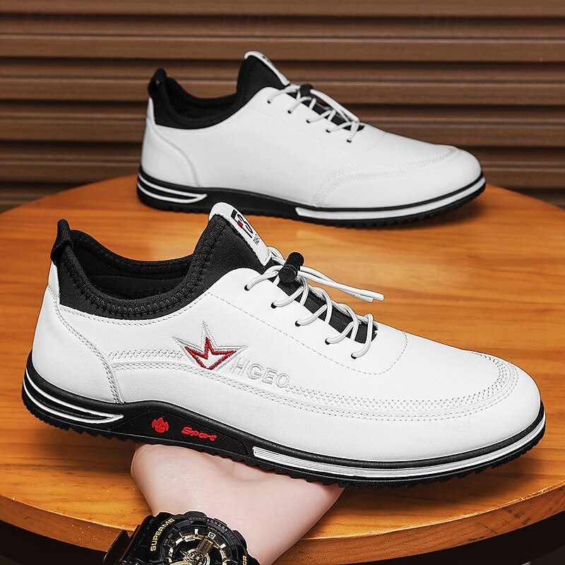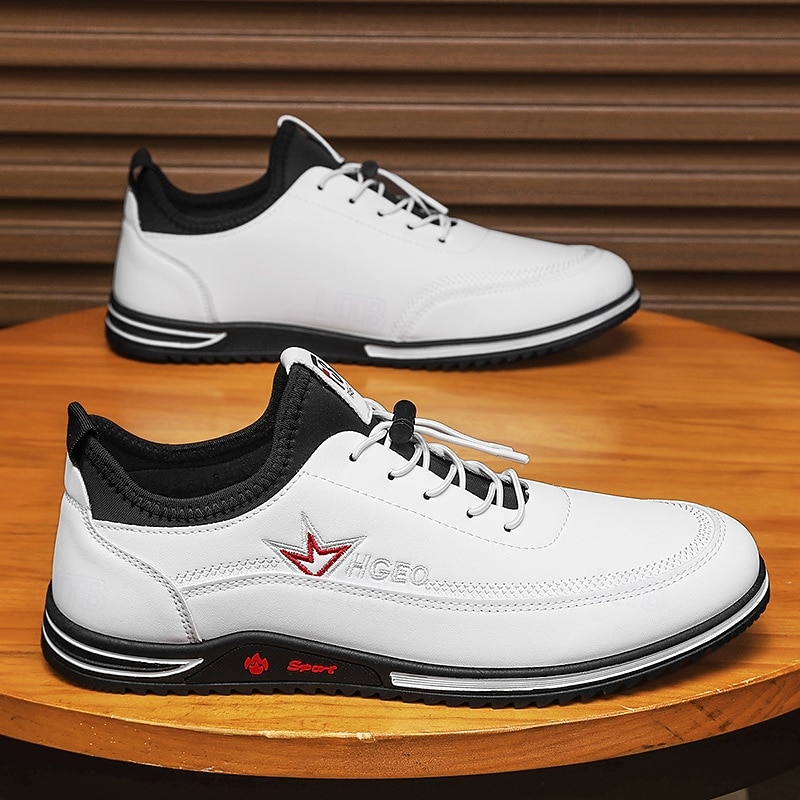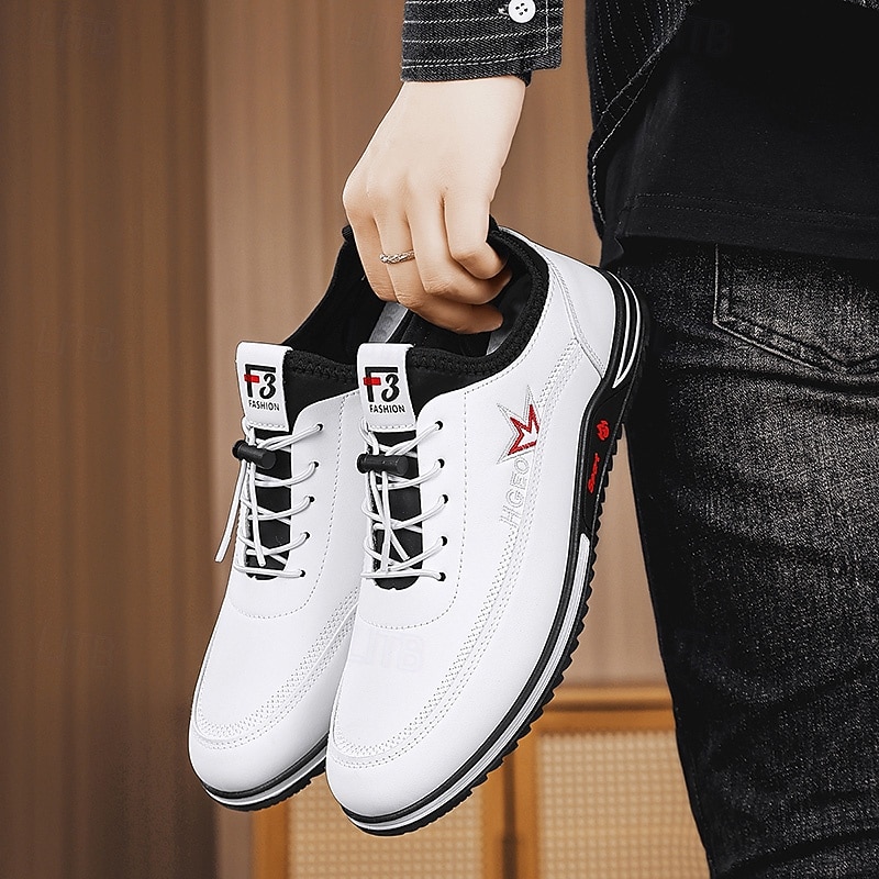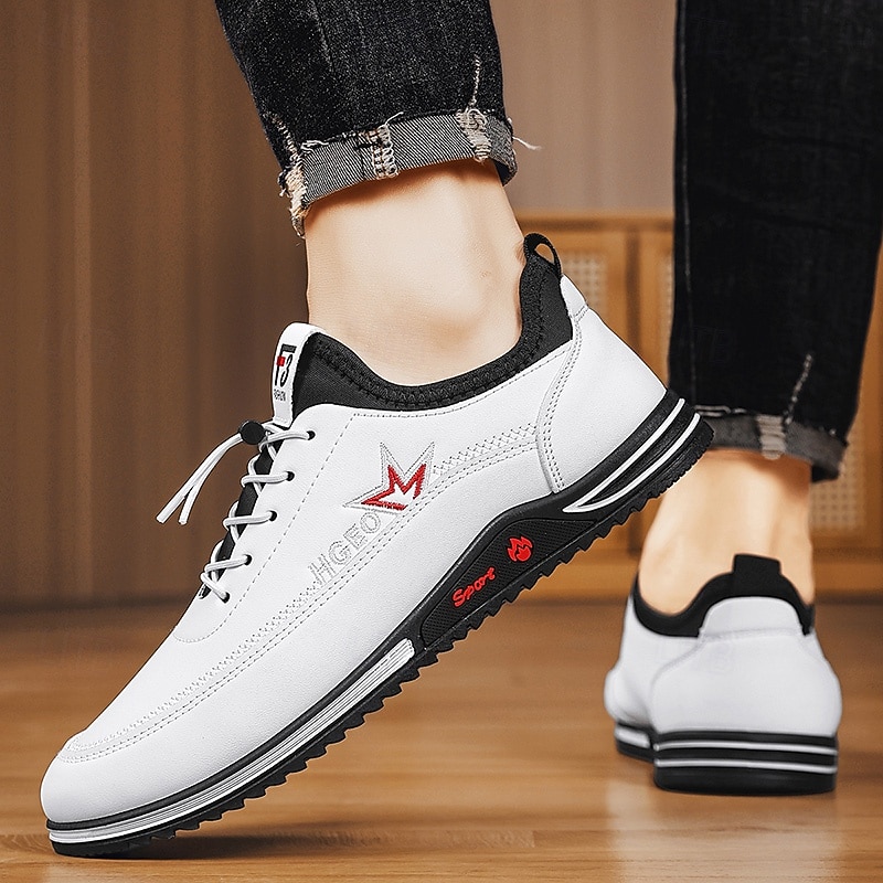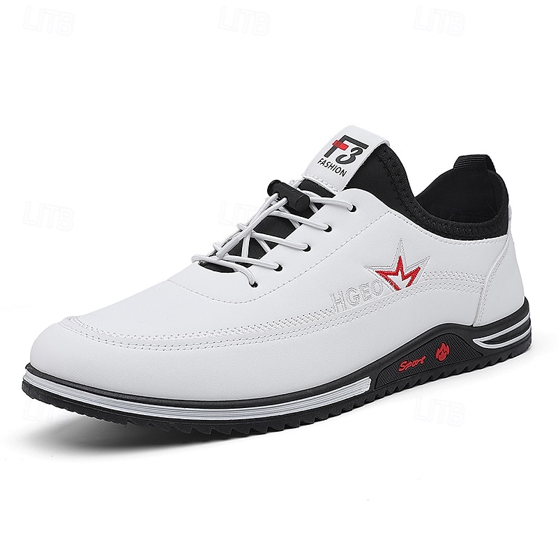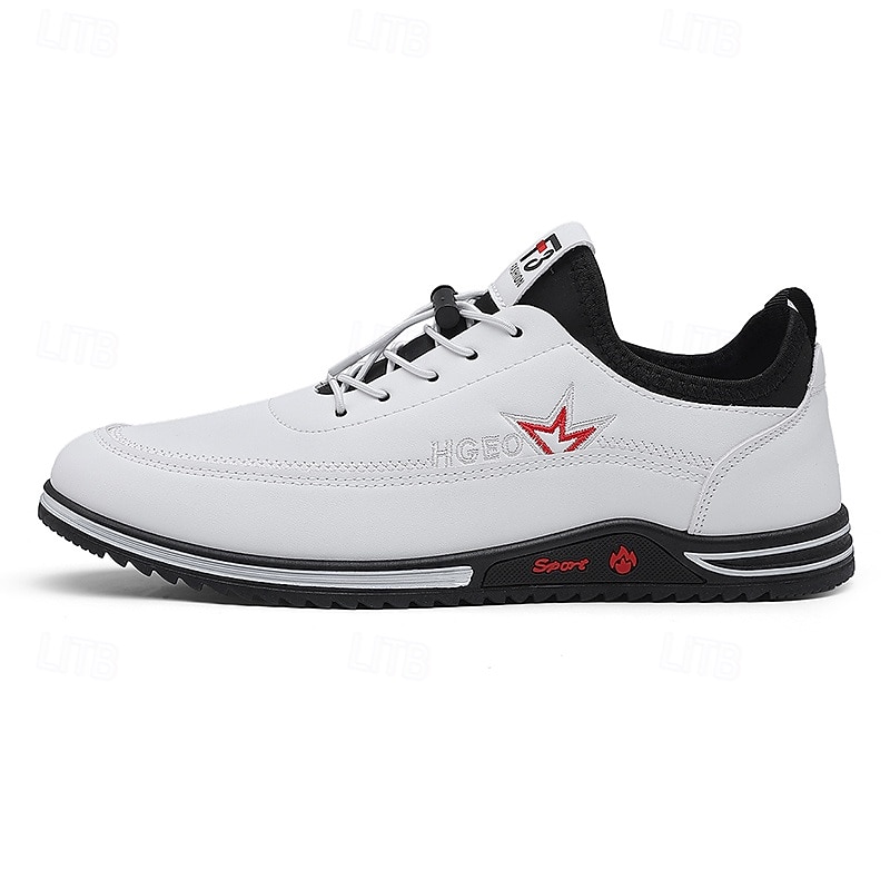 HOT ! Men's White Lace-Up Sneakers with Red Detailing - Stylish and Durable, Perfect for Casual Outings, Sports and Everyday Wear