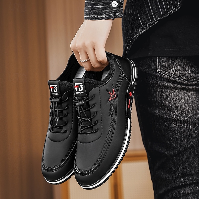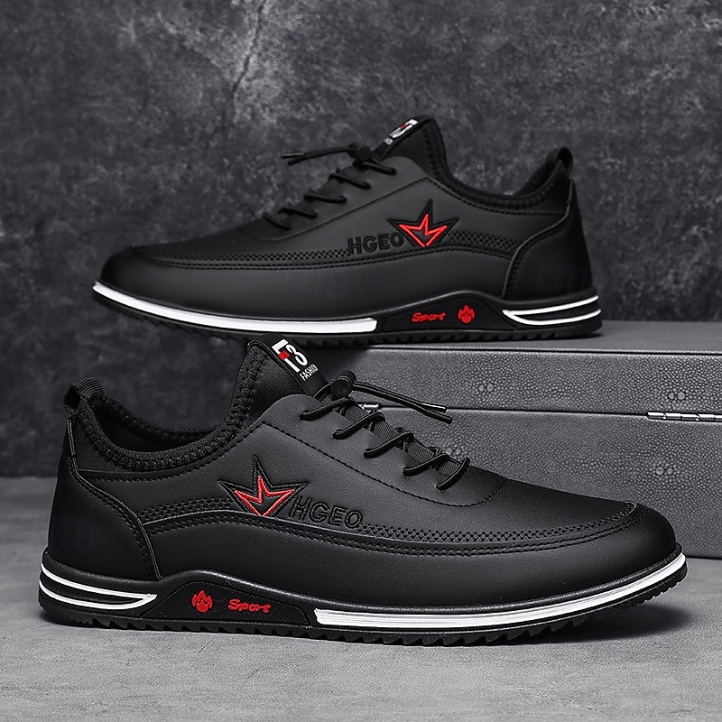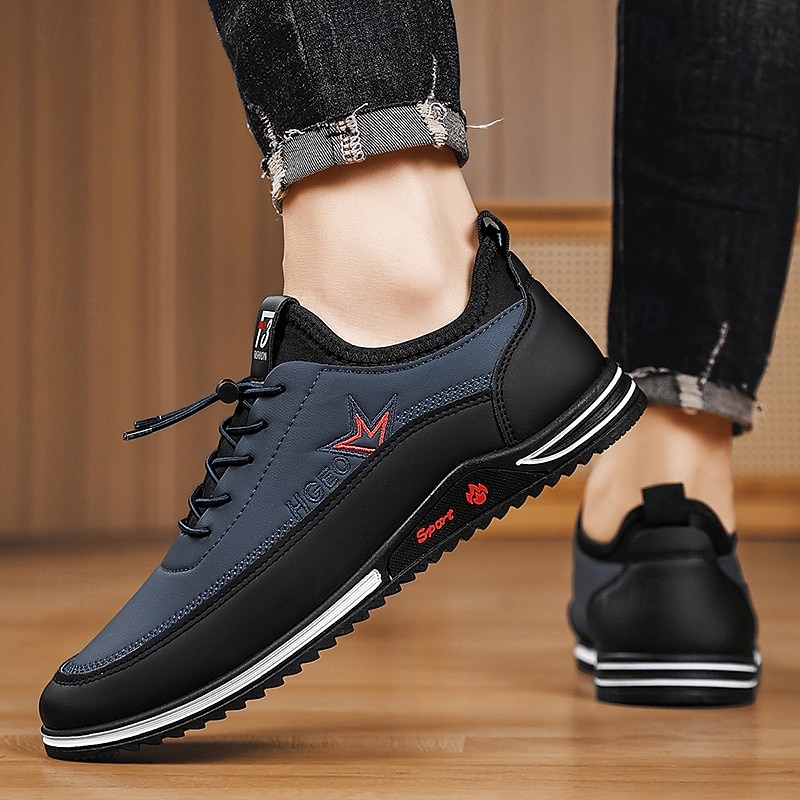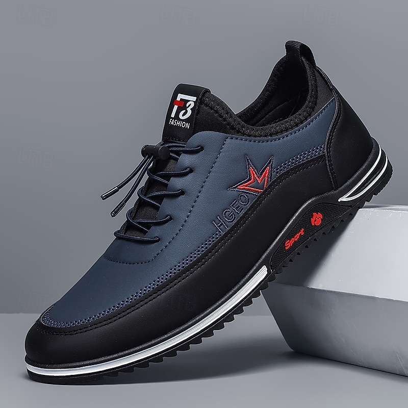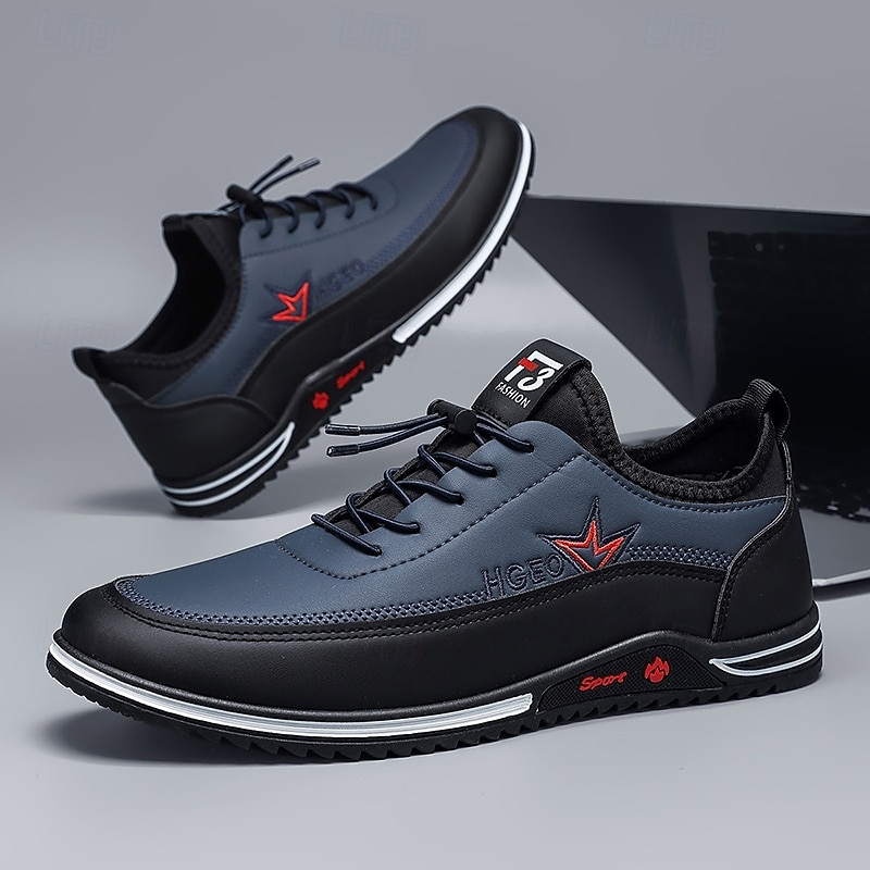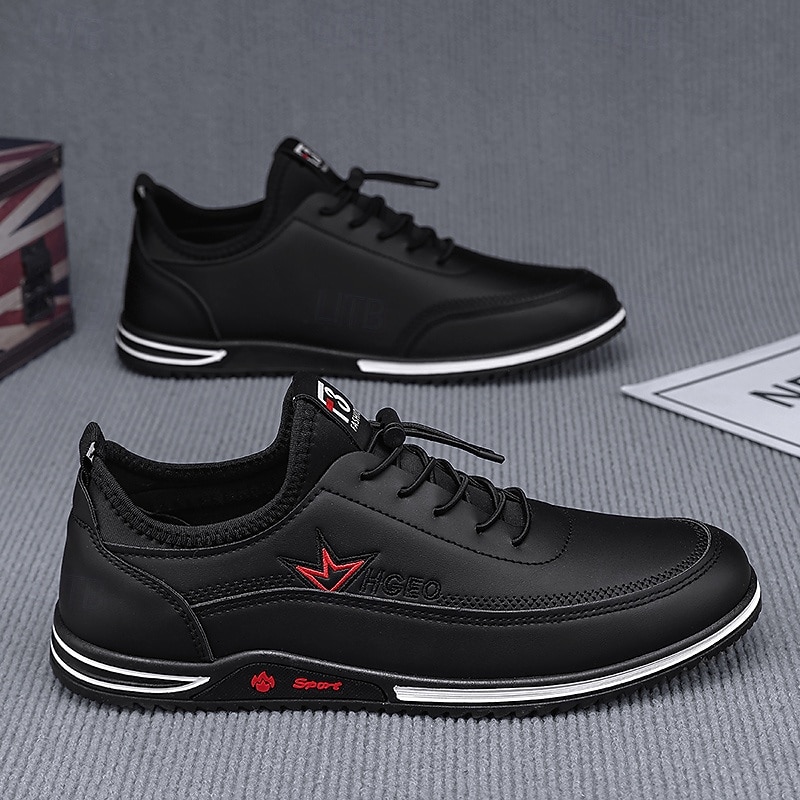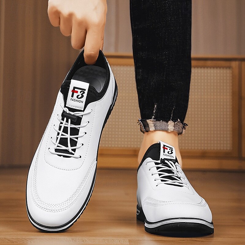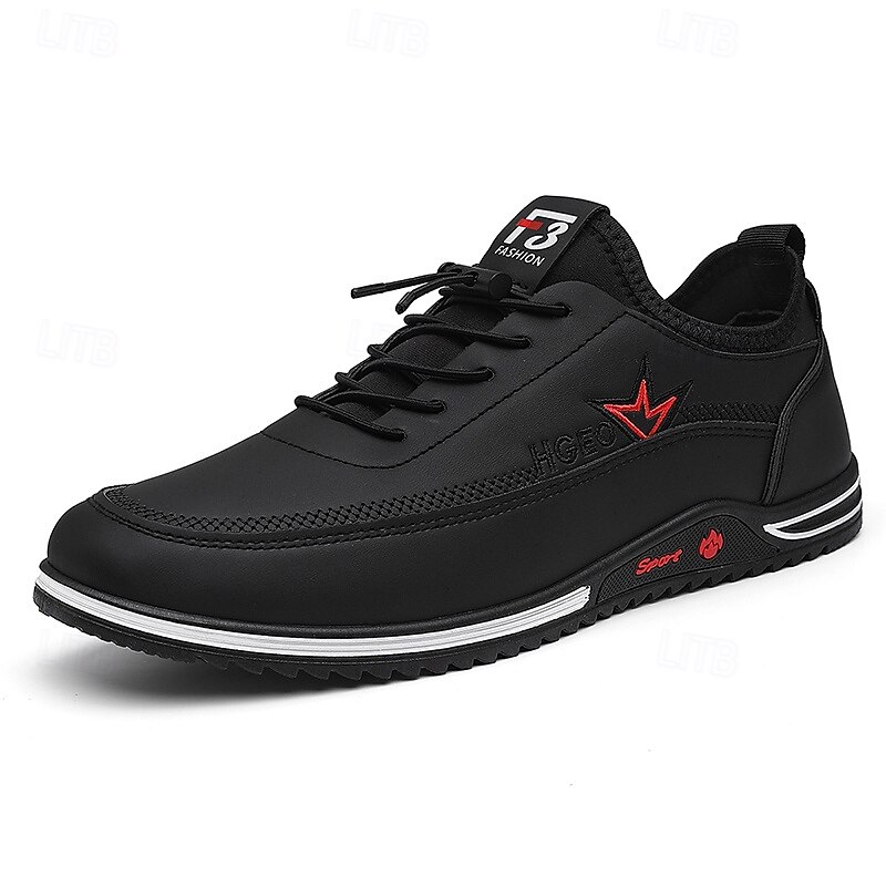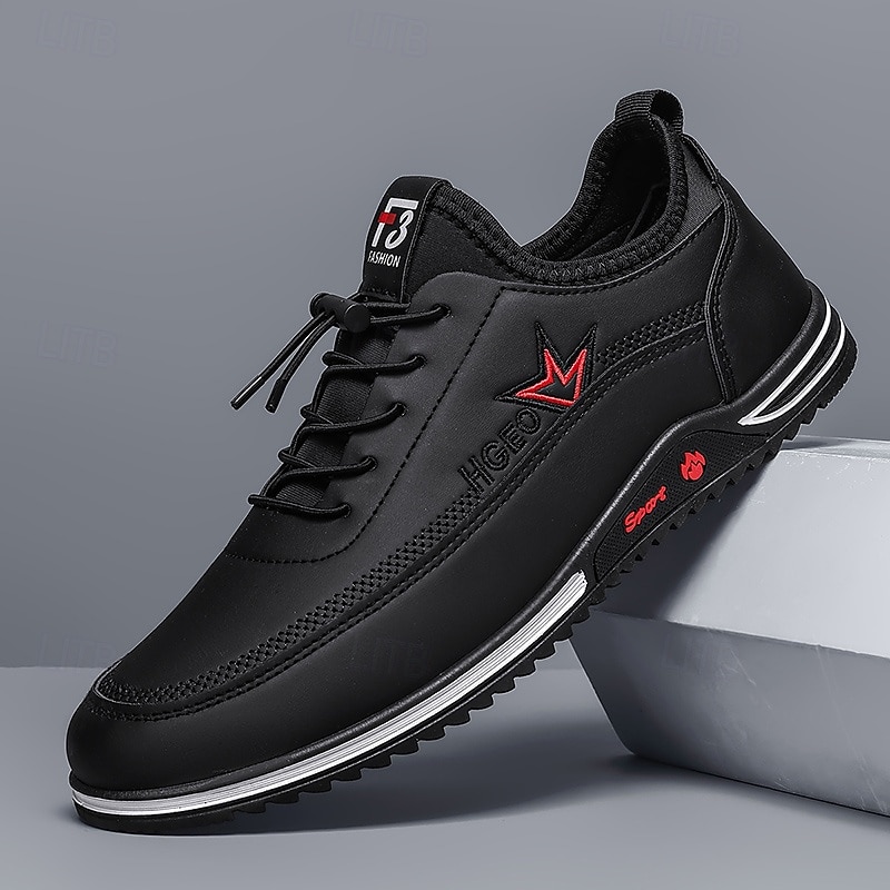 HOT ! Men's White Lace-Up Sneakers with Red Detailing - Stylish and Durable, Perfect for Casual Outings, Sports and Everyday Wear