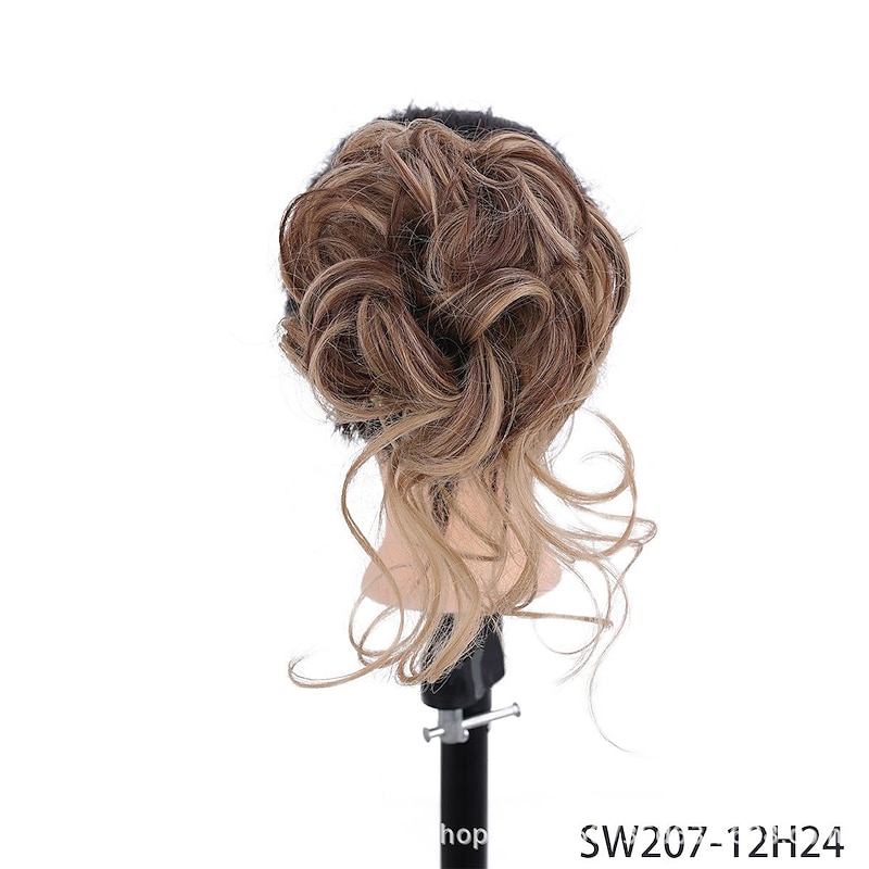 foreign trade chemical fiber synthetic lazy catch clip hair ring flower bud ball head girl natural fluffy long beard fashion wig 12