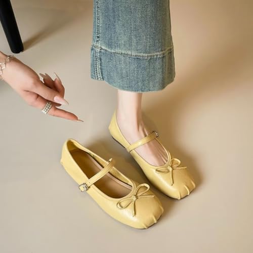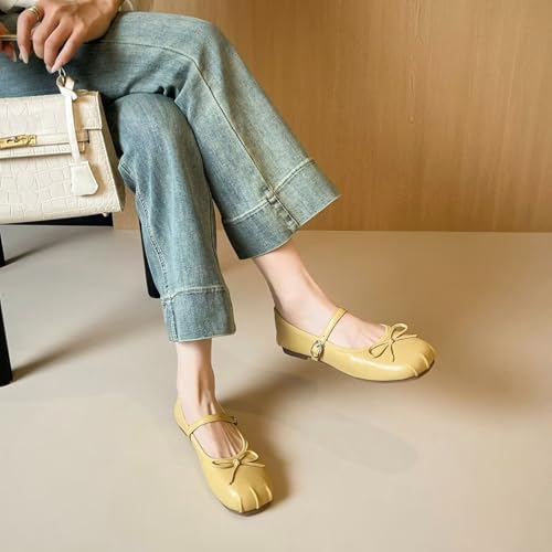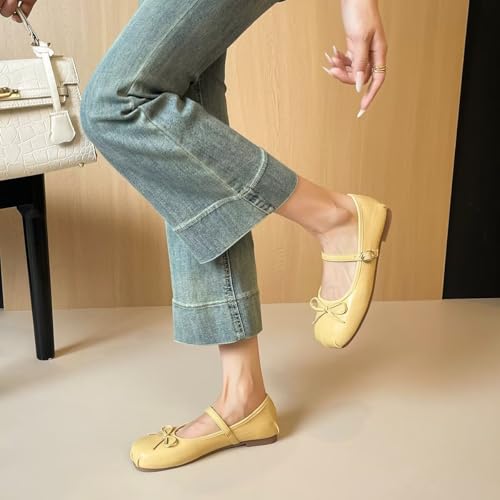 LUXINYU Women Bowknot Mary Jane Shoes Comfortable Round Toe Pu Leather Flats Buckle Strap Casual Ballet Office Shoes 6