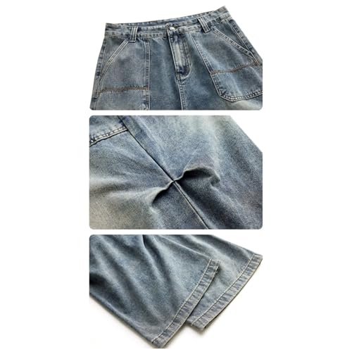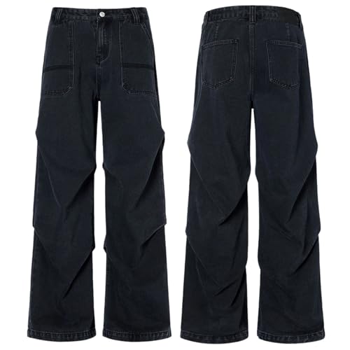 More information about Y2k Washed Jeans for Mens Fashion Pleated Mid-Rise Loose Fit Denim Pants Streetwear
